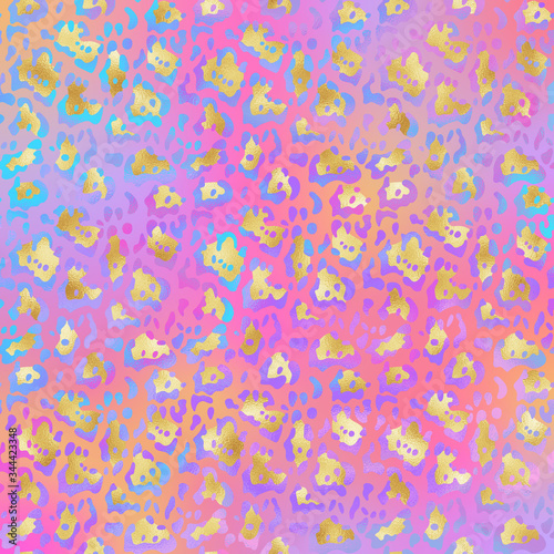Holographic Jaguar Print on Gradient Background - Cute holographic jaguar spots pattern on bright neon gradient background