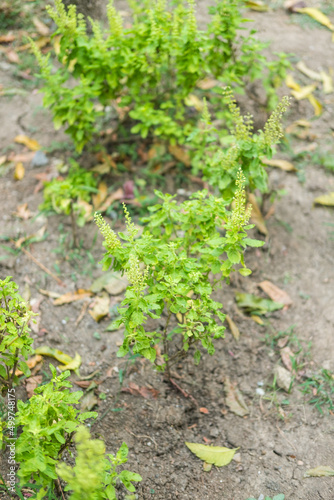 Holy basil tree in the garden, plants with a pungent odor spicy flavor