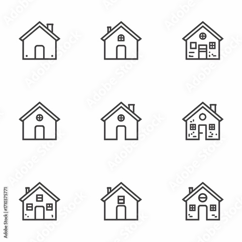 Home and Factory Icon Set | Minimal Vector Design for Industry, Real Estate, and Construction