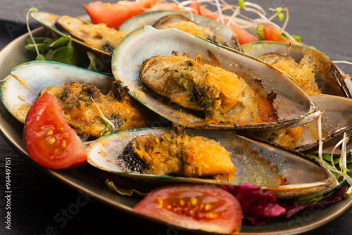 baked, clam, cooked, cream, delicious, diet, dish, fancy, fish, food, fresh, gastronomy, epicure, health, healthy, herb, ingredient, meal, mediterranean, mollusc, mussel, nourishment, nourishment, olive, parmesan, parsley, plate, sauce, seafood, seashell, shell, seafood, stuffed, tasty, traditional, vegetarian, yellow
