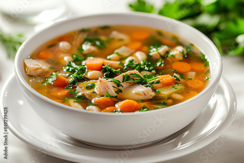 soup, chicken, vegetable, bean, white, carrot, celery, parsley, homemade, bowl, dish, food, cookery, dinner, lunch, healthy, tasty, delicious, comfort food, warm, broth, stock, cooking, receipe, ingredient, meal, eat, kitchen, dining, fresh, favor, creamy, hearty, satisfying, simple, easy, garnish