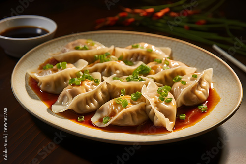 dumpling, meat, chinese, homemade, dish, meal, plate, lunch, vegetable, cookery, sauce, steamed, stuffed, tasty, filling, healthy, epicure