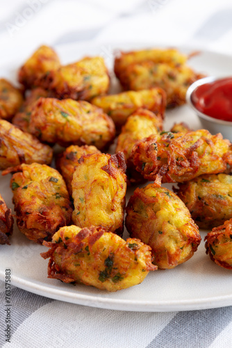 tot, tater, fried, potato, ketchup, condiment, grilled, baked, snack, vegetable, food, nugget, toasted, puff, greasy, crispy, ketchup, fast, fried, plate, organic, parsley, half face