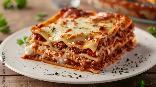Homemade lasagna with layers of cheese and meat sauce