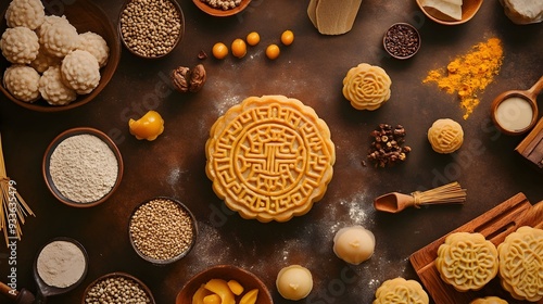 homemade, pastry, baking, dessert, asian cuisine, chinese food, traditional, yolk, ingredient, cooking, shaping, decorating, food photography, copy space, confection, delicacy, festive, autumn, hand-made, artisanal, craftsmanship, moon, tradition, ritual, family, gathering