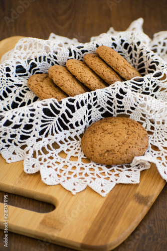 Homemade oatmeal cookies with raisins. Healthy biscuits. Oatmeal cookies for breakfast.