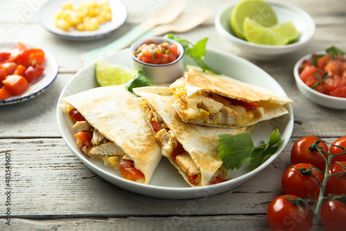 Homemade quesadilla with chicken and tomatoes