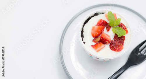 Homemade Strawberry cheesecake,fresh, colorful, and delicious dessert with juicy strawberries,cream cheese