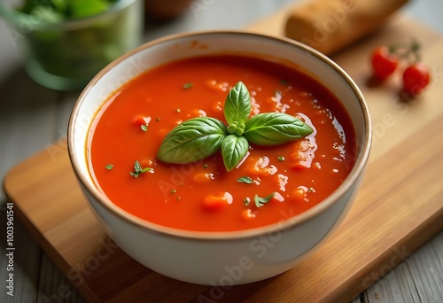 Homemade tomato sauce with a leaf on the top, red Tomato soup