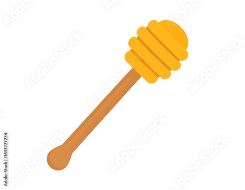 honey, dipper, spoon, wooden, food, kitchen, utensil, sweet, dessert, breakfast, snack, healthy, natural, sweetener, organic, delicious, yellow, orange, foodstuff, icon, vector, illustration, flat, simple