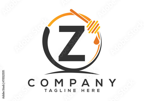 Honeycomb bees Logo With Z Letter Concept. Honey logo font emblem vector illustration