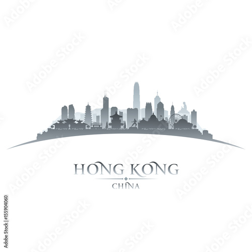 hong kong, china, city, skyline, silhouette, vector, background, asia, square, architecture, beautiful, building, city landscape, coast, dark, day, downtown, front, high, illustration, landmark, modern, postcard, poster, reflections, scraper, sky, skyscraper, sunrise, sunset, tall, travel, white