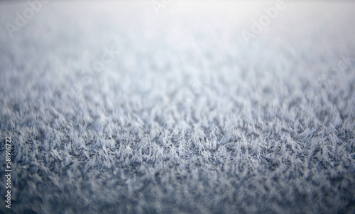 Horizonatal Macro shot of Ice crystals on Car hood with a shallow depth of field. Soft focus on top and bottom and sharp across the bottom third.