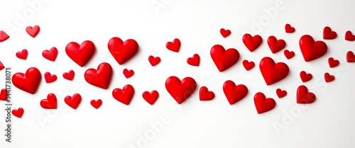 Horizontal frame of red hearts on white background, perfect for Valentine's Day designs, february, abstract