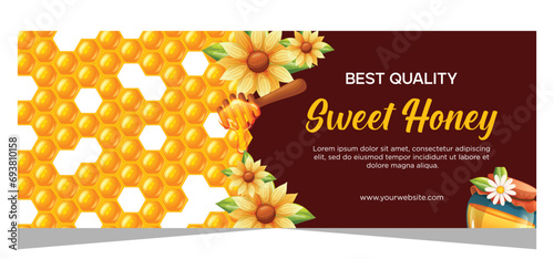 honey, honey pot, bee, aromatic, apiculture, sweet, natural food, organic food, dessert, delicious, nourishment, sweet food, health food, banner, farm fresh, fresh, realistic, bumblebee, design, vector, template, illustration