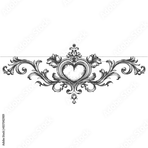 horizontal, line, divider, hearth, shape, baroque, engraving, style, art, bw, design, ai, generated, black, colours, only