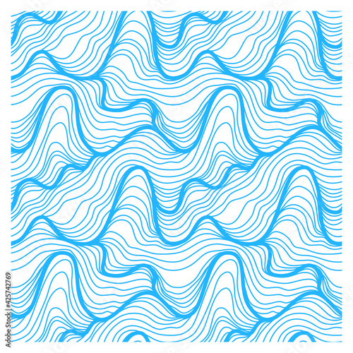 Horizontal pattern of blue waves hairs. Design for backdrops and colouring book with sea, rivers or water texture. Figure for textiles.