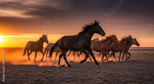 horse, running, sunset, dust, freedom, wild, herd, sun, brown, gold, horizon, plain, nature, beauty, energy, speed, action, animal, sunrise, twilight, silhouette, light, warm, dramatic, sky, grass, earth, outdoors, landscape, photo, moment, golden hour, power, fast, galloping, wild animal, group, scenic