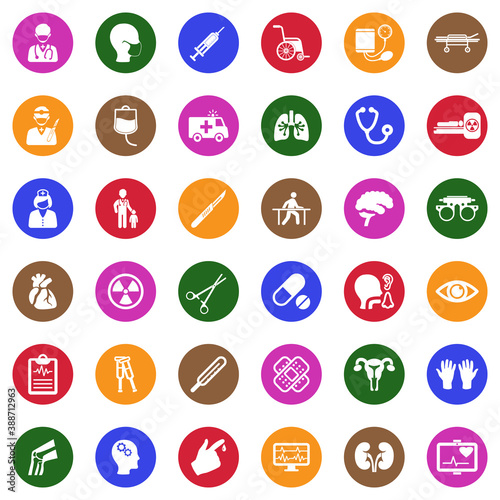 hospital, icon, circle, colours, white, ambulance, bandage, bed, blood, cardiogram, diagnosis, doctor, emergency, first aid, laboratory, medicals, medicine, nurse, object, paramedic, patient, pharmacy, pill, pulse, stethoscope, surgeon, symbol, syringe, thermometer, vector, wheelchair, analysis, anatomy, building, care, clinic, collection, cross, make well, design, health, nubes, illustration, isolated, rescue, set, signs, flat, graphic, silhouette