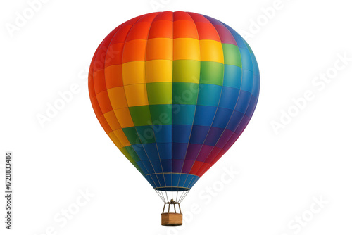 hot, air, balloon, rainbow, colourful, flight, travel, adventure, freedom, optimism, diversity, pride, journey, dream, exploration, upward, ascending, floating, sky, transportation, recreation, holiday, vacation, fun, joy, happiness, bright, high-coloured, vibrant, spectrum, full, red, orange, yellow, green, blue, indigo, violet, multiple, colours, isolated, cut-out, white, background, transparent, studio, shot, no, people
