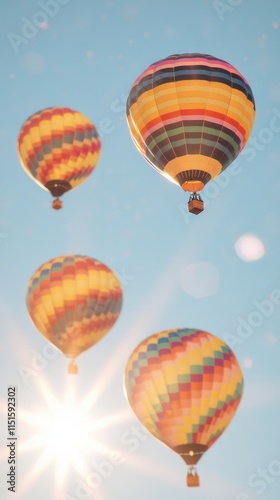 Hot air balloons ascending under a sunburst sky outdoor event colorful experience scenic view adventure in the air