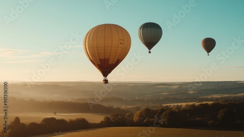 hot, air, balloon, balloon, sky, landscape, field, horizon, nature, flight, aerial, sunrise, adventure, travel, morning, view, elevation, gold, hours, up high, soaring, upwards, freedom, exploration, cloud, peaceful, tranquil, calm, blue, yellow, red, green, brown, forest, tree, grass, hill, distant, photo, wide, angle, summer, bright, soft, open, space, panorama