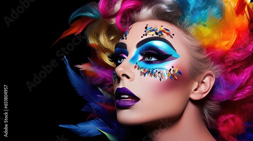 Hot Brazilian carnival woman in colorful makeup, generative ai