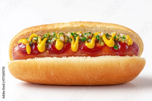 hot dog, fast food, bun, sausage, ketchup, mustard, relish, junk food, grilled, snack, meal, eating, unhealthy, frankfurter, wiener, delicious, comfort food, bar-b-q, picnic, summer, cooking, food photography, isolated, white background, studio shot, overhead, ready to eat, topping, ingredient, condiment, epicure, casual attire, cookery, dining, flavorful, lunch, dinner, tasty, fresh, serving, simple, no people, celebration, event, fair, festival