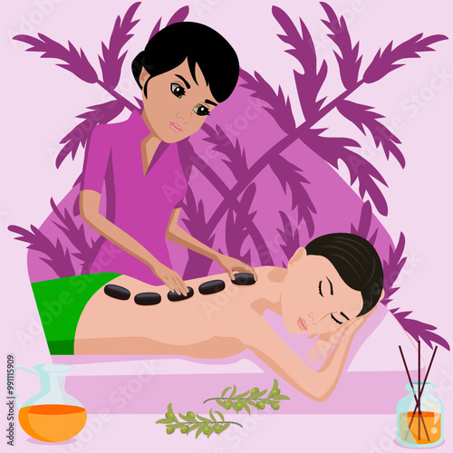 massage, hot stone, hot, stone, back, healer, ethnicity, asian ethnicity, spa, salon, cabinet, body part, body, skin, skincare, bodycare, reiki, alternative medicine, therapy, treatment, healthy lifestyle, health spa, care, health care, physical therapy, beauty, relaxation, person, woman, female, illustration, object, isolated, vector, background, cartoon, flat, style, design, art, poster