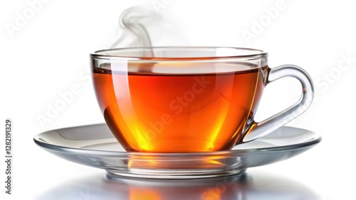 tea, cup, glasses, saucer, hot, beverage, drink, amber, liquid, steam, transparent, clear, warm, refreshment, caffeine, aroma, fragrant, brown, colours, white, background, isolated, studio, photo, image, object, single, item, food, product, still, life, visual, element, composition, detail, closeup, macro, texture, shape, light, shadow