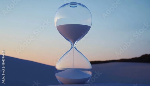 hourglass, sandglass, desert, dusk, sunset, time, passing time, time management, deadline, urgency, countdown, future, past, present, ephemeral, fragile, impermanence, still life, macro, closeup, desert landscape, dune, dune, horizon, sky, twilight, peaceful, serene, contemplative, quiet, reminder, concept, symbol, symbolic, minimalism, minimalist, clarity, glasses, semitransparent, empty, texture, natural, nature, landscape, day, daylight