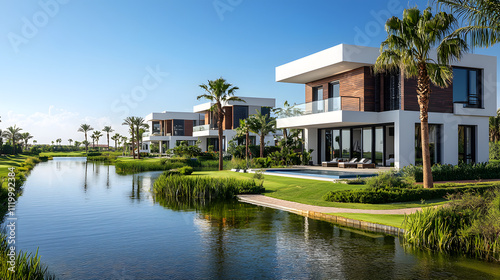 house, building, architecture, home, palm, water, tree, villa, hotel, sky, florida, garden, travel, beach, lake, summer, city, tropical, luxury, resort, tree, exterior, residential