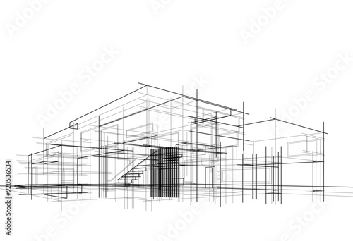 House concept sketch architectural drawing 3d illustration