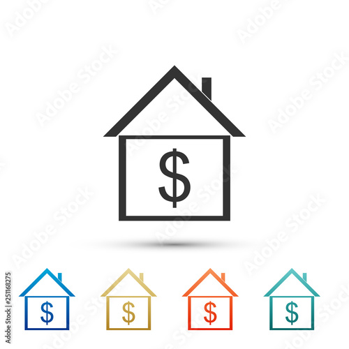House with dollar icon isolated on white background. Home and money. Real estate concept. Set elements in color icons. Vector Illustration