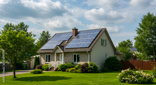 house, home, dwelling, property, roof, solar panel, solar energy, solar energy, photovoltaic, clean energy, green energy, renewable energy, environment, ecology, sustainability, electricity, power, technology, homeownership, residential, investment, suburban, rural, yard, garden, tree, nature, sky, blue skies, cloud, siding, nobody, architecture, building, grass, bungalow, country, estate, landscape, lawn, door, family, residence, old