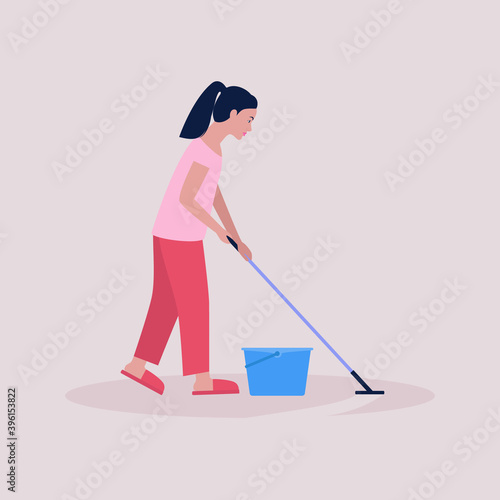 mop, washing, woman, female, people, flat, vector, housekeeping, character, home, person, water, design, illustration, apartment, cleaning, homemaker, hold