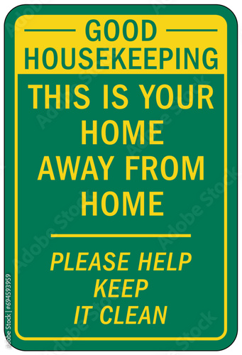 Housekeeping sign and labels this is your home away from home. Please help keep it clean