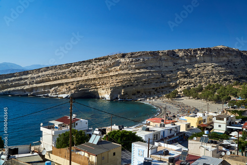bay, rock, beach, cliff, sand, sea, water, mountain, sky, horizon, man, vacation, leisure, tour tourism, layer, coast, volcanic, beach chair, umbrella, cave, travel, house, antennae, roof