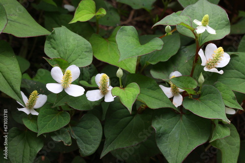 Houttuynia cordata (Eoseongcho,chameleon plant) blooming