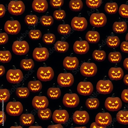 How about Halloween seamless pattern with pumpkins and spooky symbols in orange?