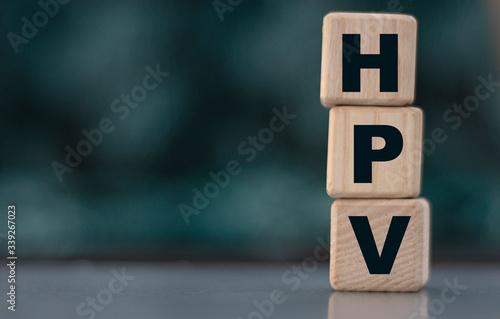 HPV word on cubes on a beautiful grey greener background.