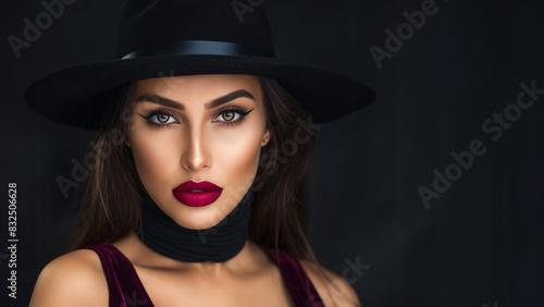 face, woman, hat, poster, close-up view, red, lip, brow, eye, cosmetic, terrific, sideview, elegant, care, skin, look, beauty, glamour, style, closeup, sensuality, make-up, sensual, elegance, eyelash, macro, close, mascara, brown, view, hair