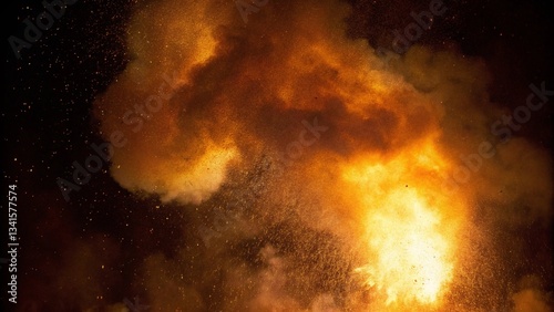 Huge, extremely hot explosion with sparks and hot smoke, against black background. perfect for digital composition