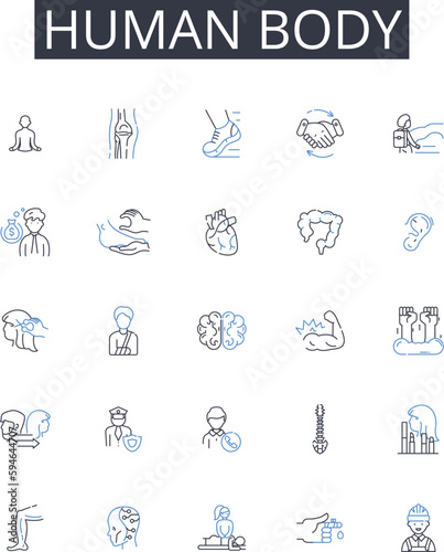 Human body line icons collection. Mental health, Fashion style, Economic growth, Environmental sustainability, Political power, Global economy, Social media vector and linear illustration. Family