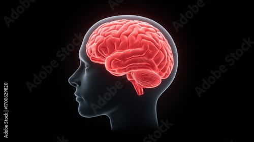 Human brain anatomy in profile view showcasing intricate details and structure with a glowing effect on a black background emphasizing neurobiology