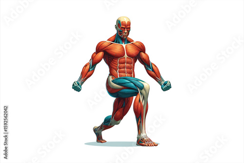 human full body muscular system vector design art, isolated on a white background