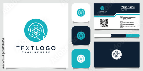 human head logo for creative with brain intelligence lamp concept and business card design template