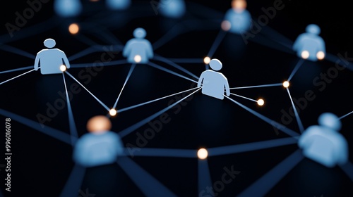 Human icons with connected lines and glowing symbols, illustrating a meeting of minds focused on a shared vision.