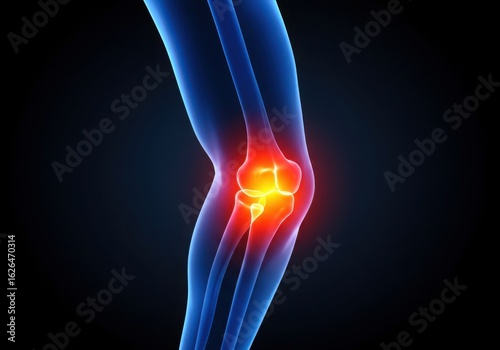 knee, joint, human, anatomy, medicals, illustration, inflammation, pain, red, glowing, bone, ligament, tendon, cartilage, injury, arthritis, health care, orthopedics, disease, condition, body, skeletal, system, health, swelling, discomfort, symptom, imaging, science, biology