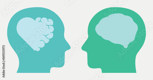Human, mental health, healthcare, medicine. Heart, brain, mind. Head, science, psychology, psyche. Well-being, healthy, emotions. Icon, set, vector